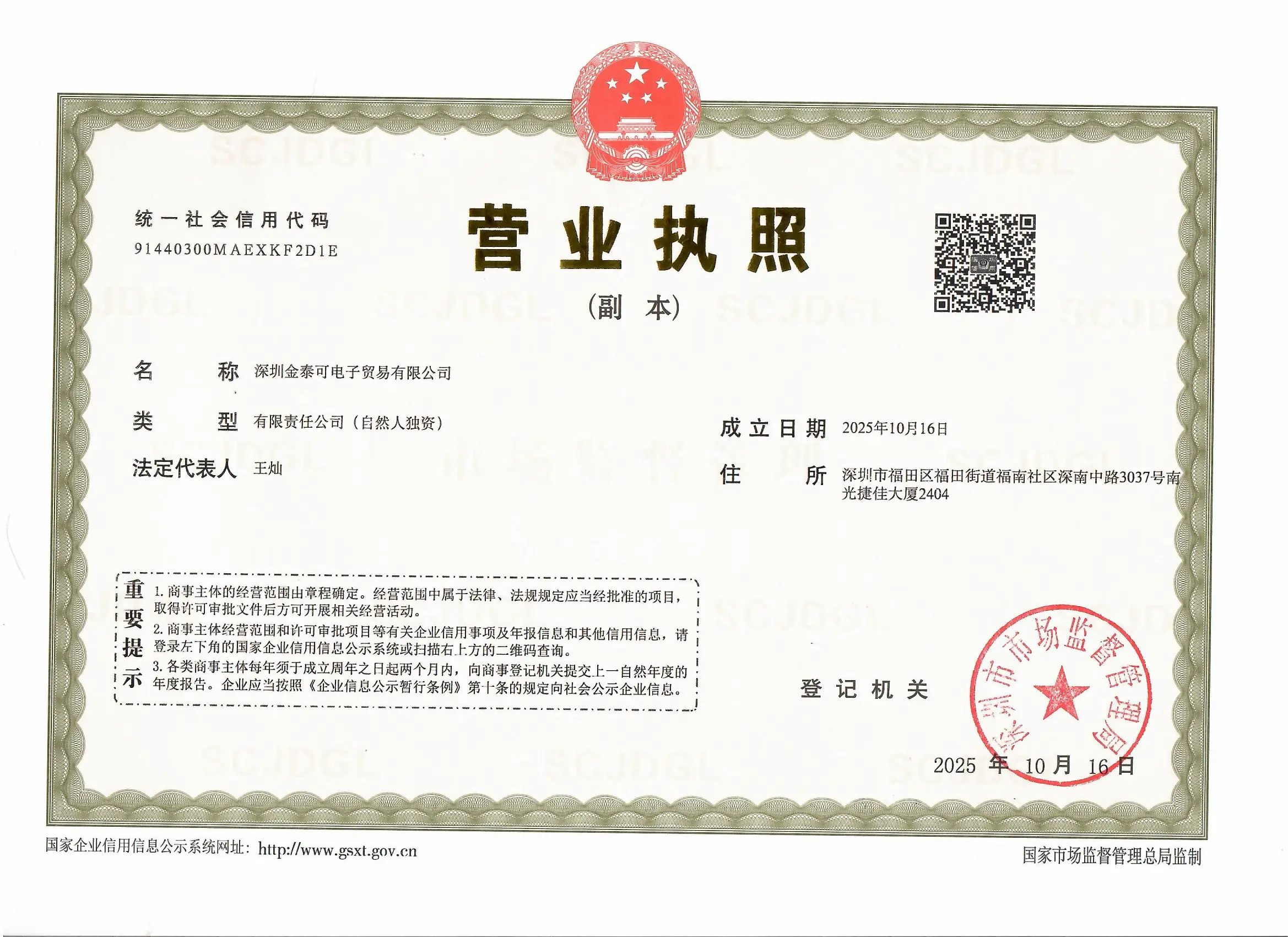 Registration No. : 91440300MAEXKF2D1E